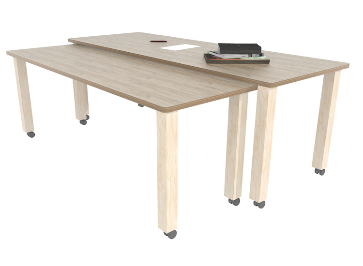 Dubbele tafel essen poten verrijdbaar Grey craft oak