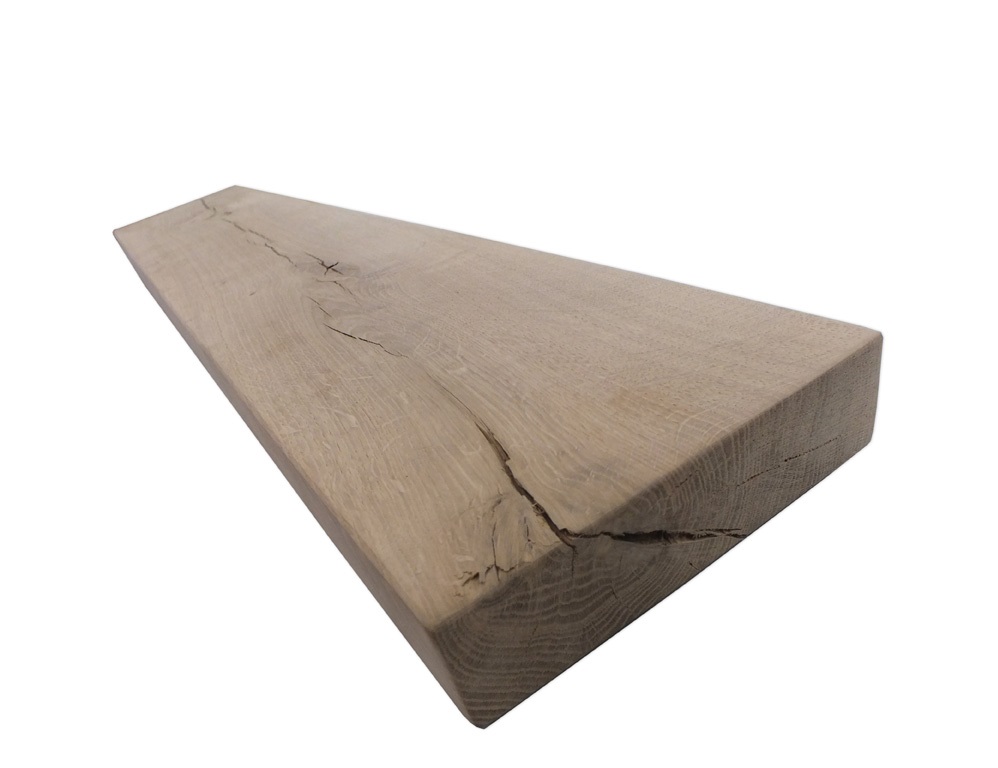 | Eiken rustiek Eiken rustiek is niet alleen bij Steigerhoutpassie maar in de hele woonbranche een populaire houtsoort. Nerf tekeningen en kleurschakeringen behoren tot het natuurlijke karakter van het eikenhout. Rustiek eiken heeft als kenmerk dat er grote (open) noesten aanwezig zijn waarbij kieren en scheuren ook tot de kenmerken behoren. Door het gebruik van rustiek eiken zullen er altijd kleurverschillen en oneffenheden aanwezig zijn, dit geeft het hout ook extra karakter! Ook zijn deze unieke eiken delen terug gedroogd tot 8% vochtgehalte, wat betekent dat deze voldoen aan meubelkwaliteit. Met simpele bewoordingen met deze eiken plank heeft u een uniek eiken deel aan de muur met karakter die compleet geschaafd en geschuurd bij u thuis geleverd word. Door deze eiken plank aan uw muur te plaatsen met onze leren plankendragers heeft u gelijk een geweldige stoere en natuurlijke uitstraling aan uw eigen muur. Kenmerken: 1 deel eiken wagondeel look geschaafd & geschuurd Afmetingen eiken plank: Lengte 100cm x breedte 17/18cm x dikte ca. 4,5cm (andere lengtes op aanvraag)