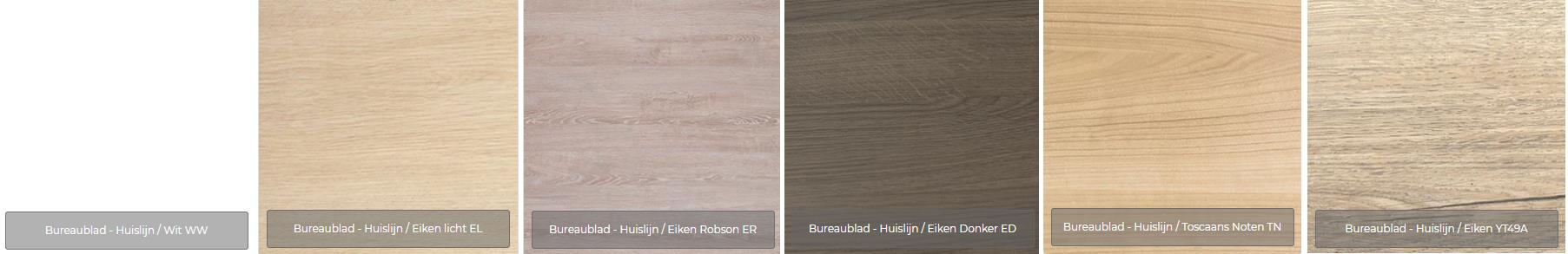 Het tafelblad is uitvoerbaar in diverse decors. Bekijk bijgaande foto’s en selecteer een decor in het keuzemenu.