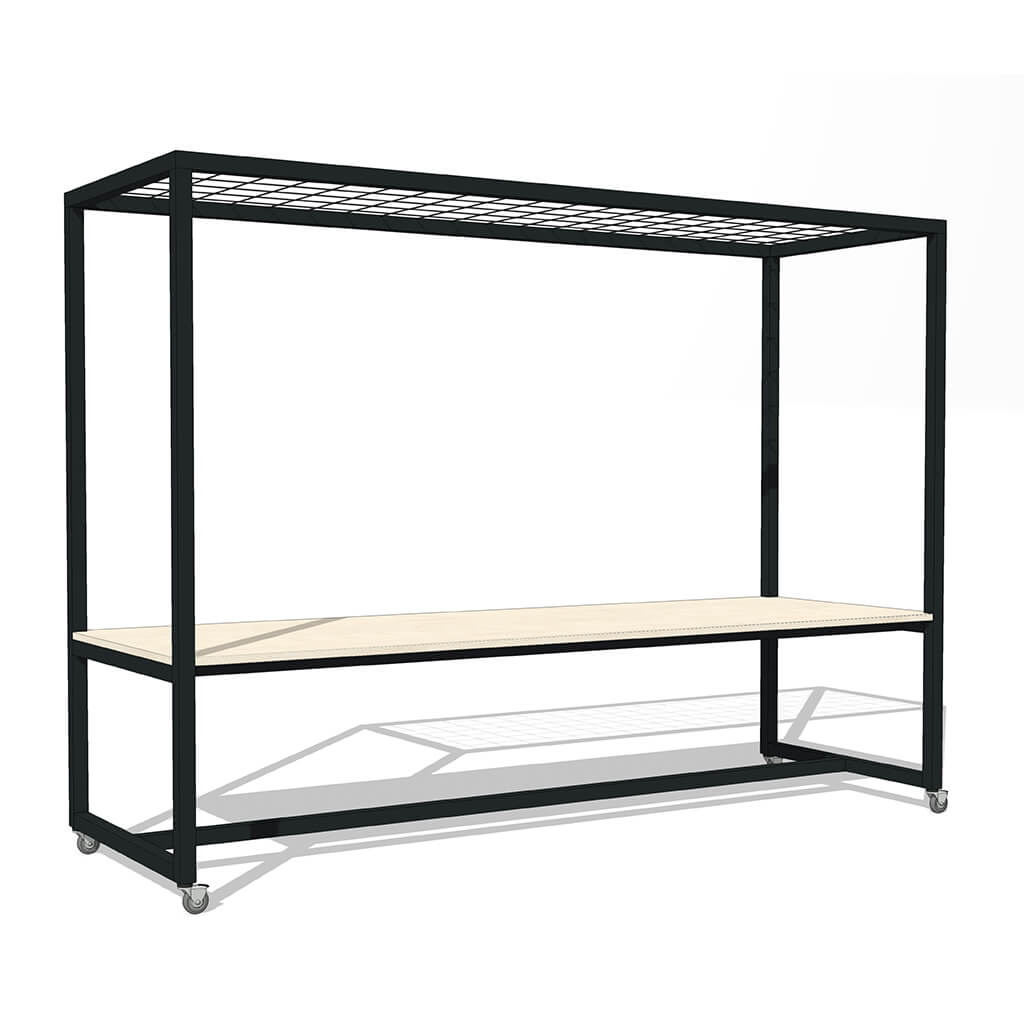 De tafel bevat een sterk metalen onderstel wat uit één stuk is gelast.