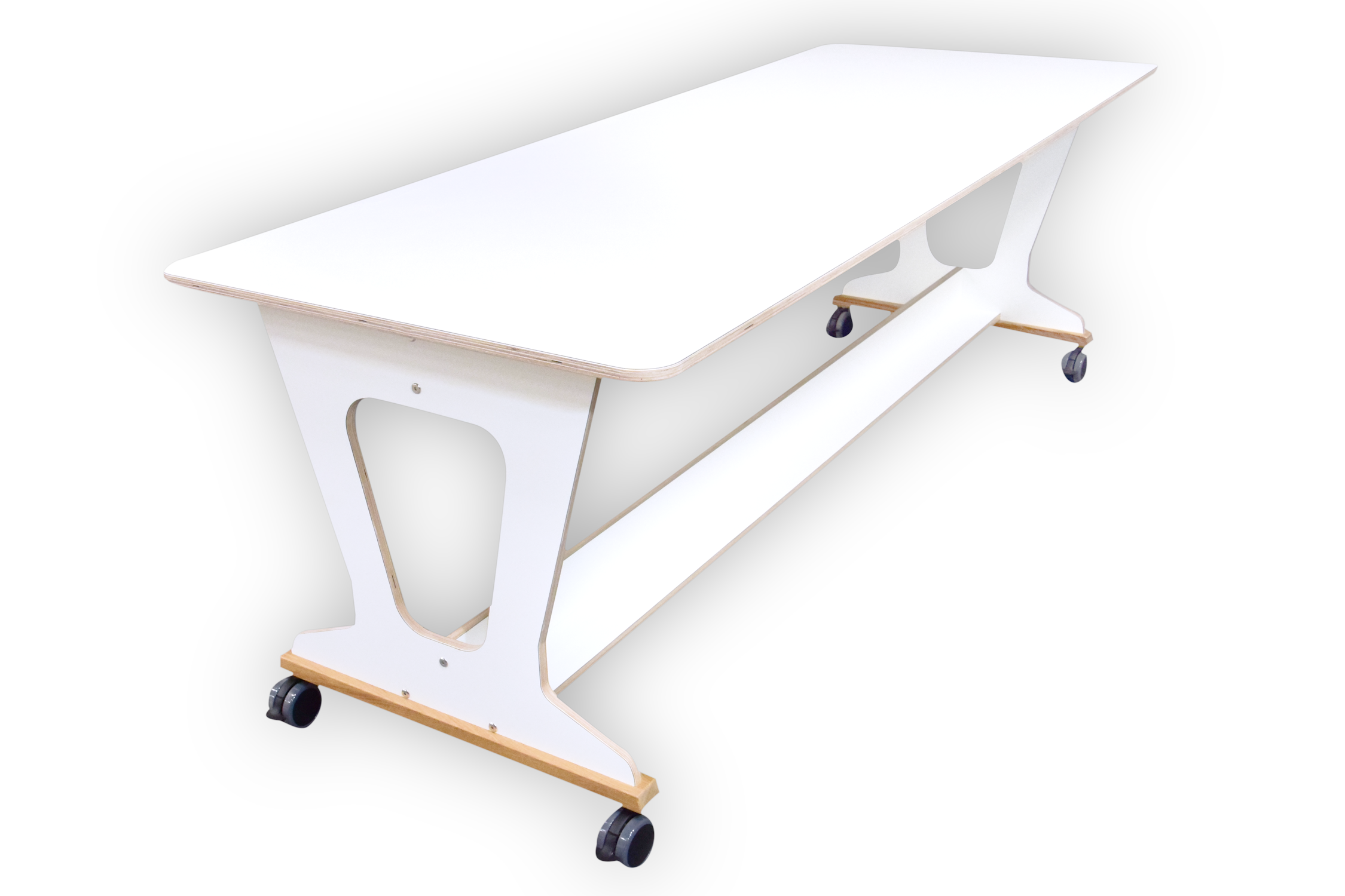 Tafel is opgebouwd uit 18mm berken multiplex met standaard wit hpl toplaag,