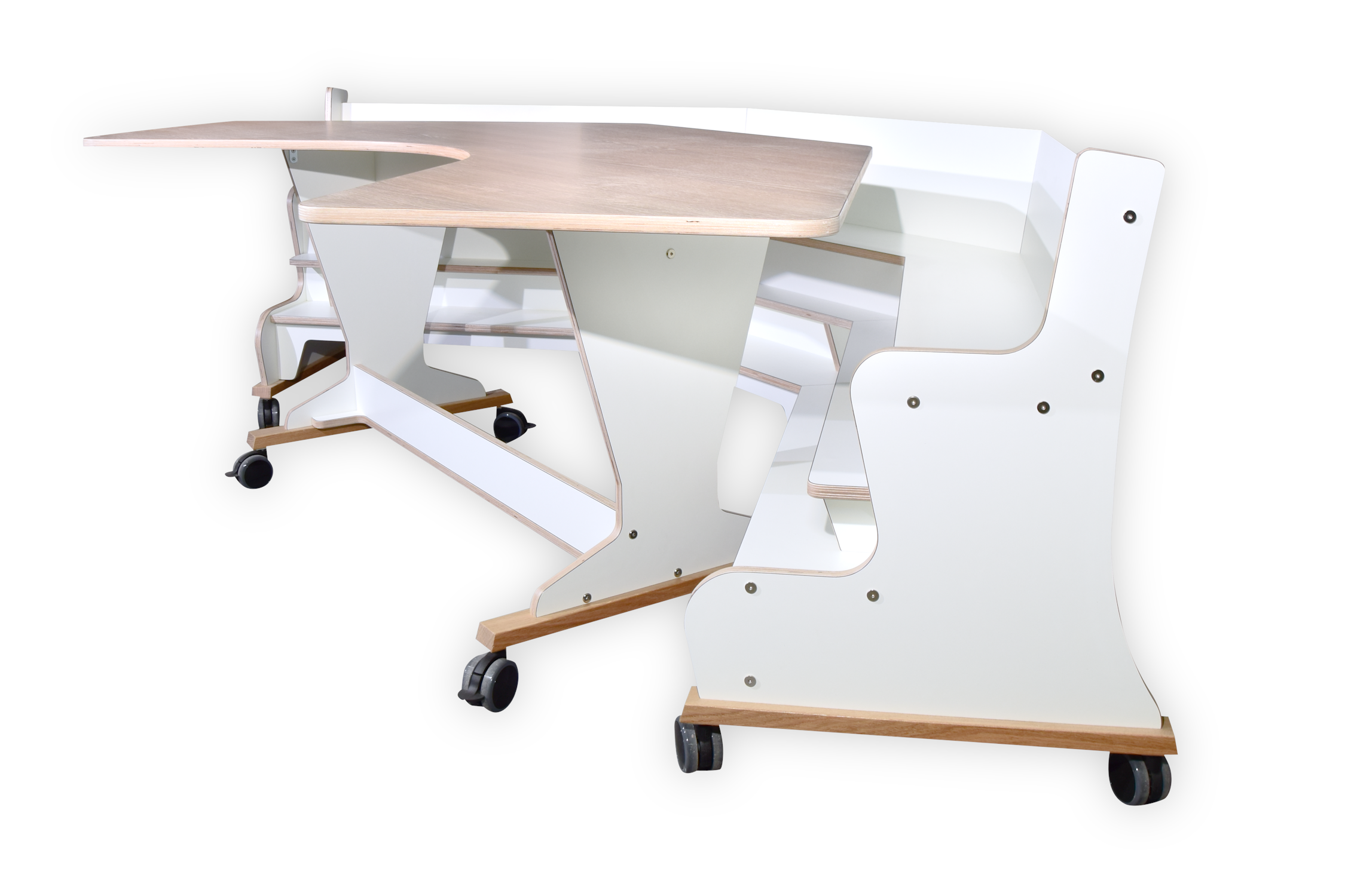 Het tafelblad en onderstel zijn standaard uitgevoerd in de kleur wit maar tegen een meerprijs