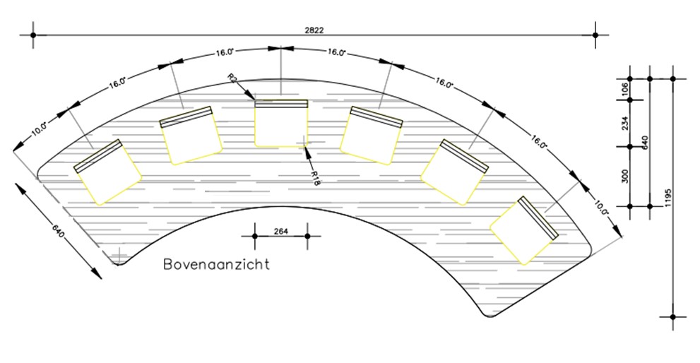 Tafel is opgebouwd uit 18mm berken multiplex met standaard wit hpl toplaag,