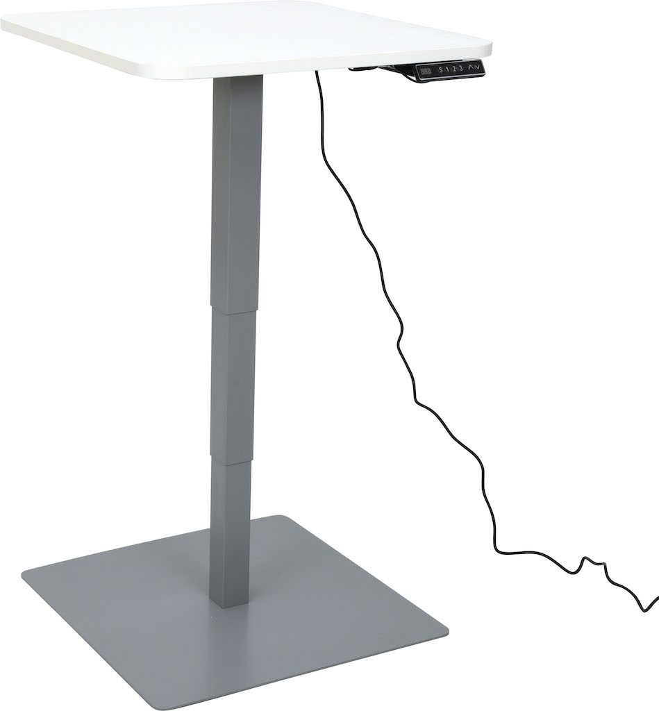 Ronde stabiele tafel met vierkante poten met soepele elektrische hoogteverstelling.